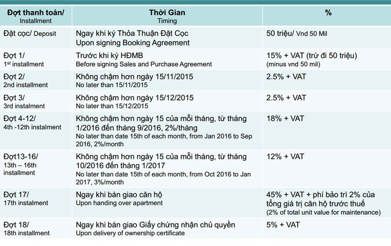 Lộ trình thanh toán The Habitat Bình Dương