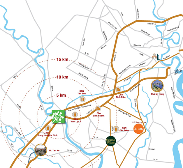 Gia Long Countryside sở hữu cả ba yếu tố tam tài "cận thị, cận giang, cận lộ", là điểm kết nối giao thương sầm uất, nhộn nhịp nhất Bến Lức, Long An. Dự án được thiết kế với ý tưởng hòa mình vào thiên nhiên thanh bình, xanh mát.