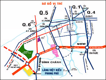 KDC Làng Việt Kiều Phong Phú 13Enằm trên mặt tiền đường Đại Lộ Nguyễn Văn Linh đối diến khu dân cư 13 B Conic, cách trung tâm quận 5 khoảng 4,5km.
