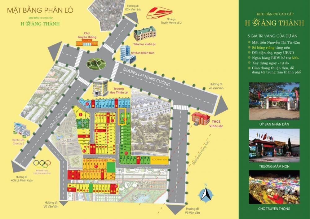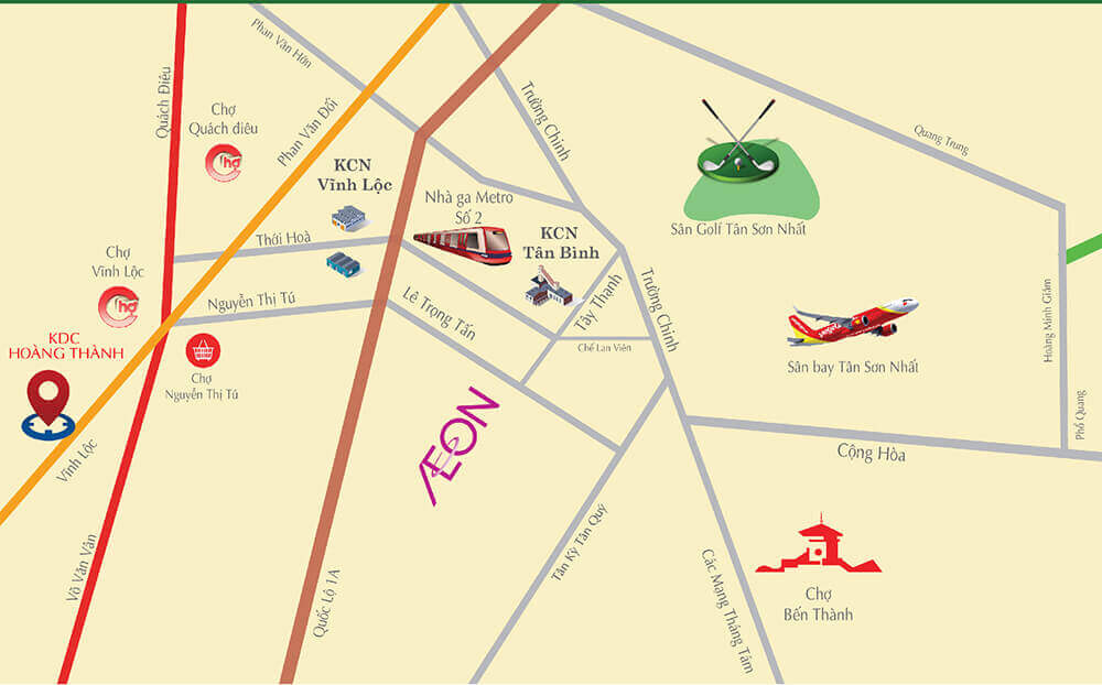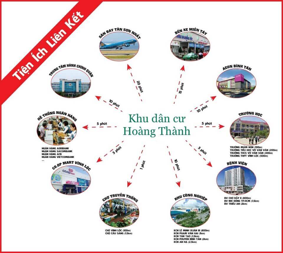 Dự án đất nền KDC Hoàng Thành nằm ngay mặt tiền đường Vĩnh Lộc, Nguyễn Thị Tú nối dài, huyện Bình Chánh, TP.HCM. Dự án tọa lạc nơicửa ngõ Tây Tp. HCM, là đầu mối giao thông quan trọng để đi vào trung tâm.