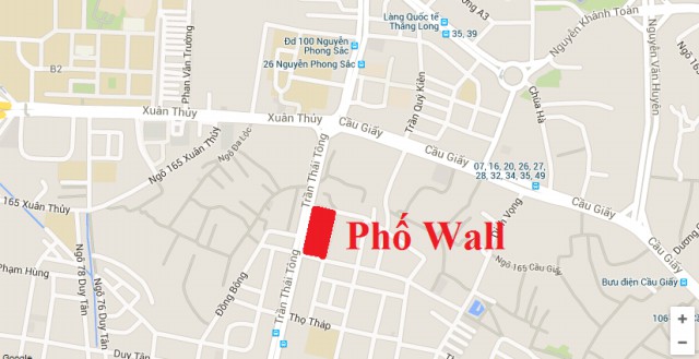 Liền kề Phố Wall được triên khai xây dựng trên Lô A ô D4 – một vị trí trung tâm của một loạt các tiểu khu kinh tế phát triển năng động của Quận Cầu Giấy, dự án nằm cạnh mặt đường Trần Thái Tông (khu Phố tài chính của Hà Nội). Dự án được đầu tư xây dựng một cách bài bản, hệ thống cây xanh được quy hoạch đồng bộ mang đến cho cư dân sống tại dự án một môi trường trong lành, mát mẻ ngay tại trung tâm thủ đô Hà Nội.