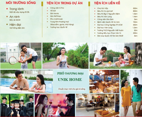 Unik Hometọa lạc ngay khu dân cư sầm uất trung tâm quận Gò Vấp, hệ thống giao thông thuận lợi di chuyển nhanh đến tất cả các tiện ích trong 5 phút :