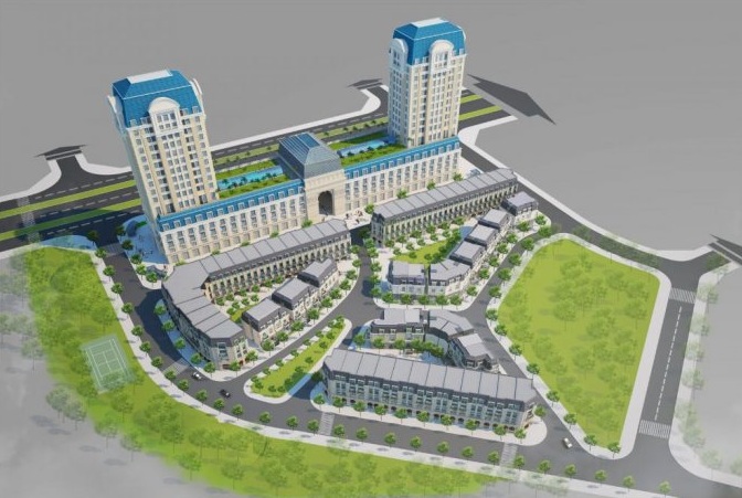 - Quy mô dự án gồm có 24 căn biệt thự song lập, 43 căn biệt thự liền kề và 1 khu phức hợp cao 15 tầng