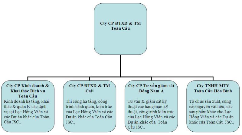 Công ty CP Đầu tư Xây dựng và Thương mại Toàn Cầu hiện bao gồm 04 Công ty thành viên, hoạt động theo mô hình Công ty mẹ - con: