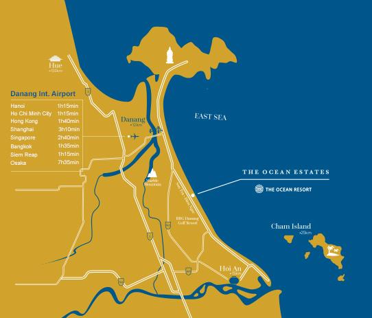 The Ocean Estates thuộc Khu phức hợp nghỉ dưỡng The Ocean Resort nằm trên đường Trường Sa, phường Hòa Giải, quận Ngũ Hành Sơn, TP. Đà Nẵng. Đây là vị trí rất thuận tiện khi chỉ mất 20 phút lưu thông là tới sân bay Đà Nẵng, trung tâm thành phố và phố cổ Hội An.