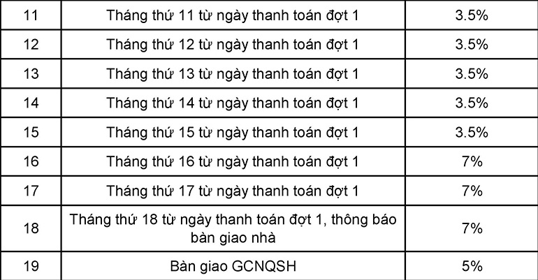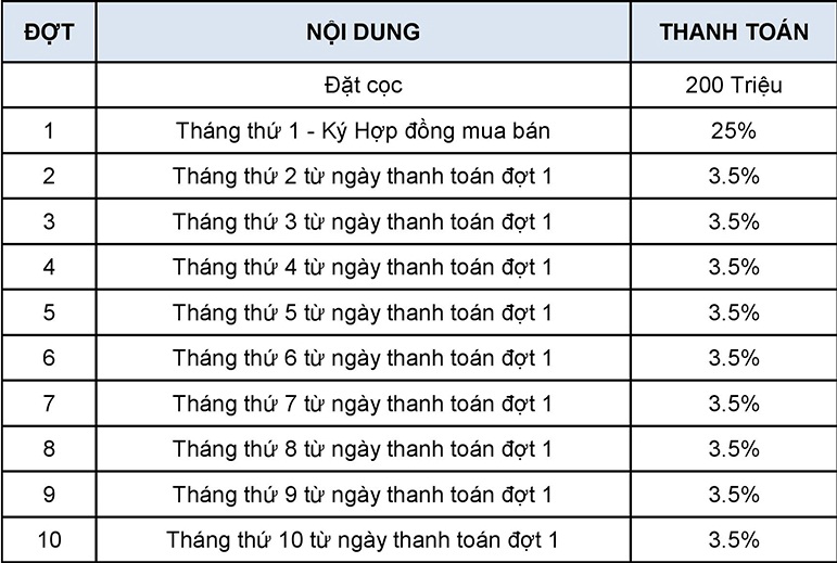 Lộ trình thanh toán Biệt thự Galleria
