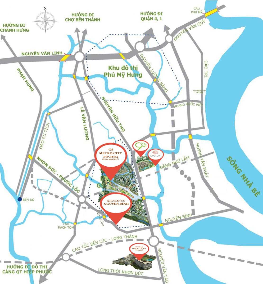 KDC Nguyễn Bình tọa lạc trên đường Nguyễn Bình, xã Nhơn Đức, Nhà Bè, Tp.HCM. Dự án có lợi thế kết nối trực tiếp với KĐT GS Metro City,chỉ12kmkết nối thẳng lên trung tâm quận 1 và 6km với trung tâm quận 7.
