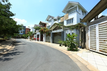 Các con đường đều có cây xanh trồng dọc theo vỉa hè dành cho người đi bộ. Ở giữa khu biệt thự là công viên được bố trí trồng những cây có tàng che lớn tạo bóng mát cho nơi sinh hoạt cộng đồng. Ngoài ra, các khuôn viên xanh xen kẽ những căn biệt thự tạo cảnh quan đẹp, không gian sống xanh cho các hộ gia đình cùng hệ sinh thái trong lành, mát mẻ bên bờ sông Sài Gòn.