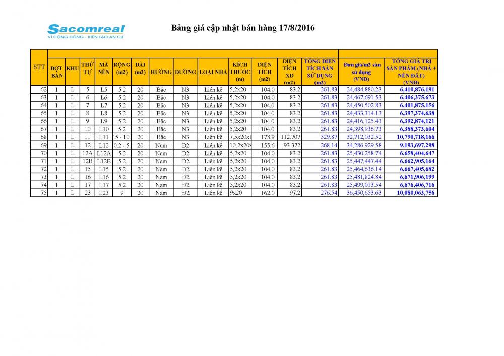 - Giá bán 20 triệu/m²