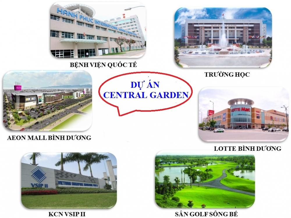 Với đầy đủ tiện ích nội - ngoại khu hiện đại như công viên cây xanh, hồ bơi,quán cafe, cơ sở dịch vụ, trung tâm thương mại,chợ, trung tâm chăm sóc sức khỏe, trung tâm y tế cộng đồng,trường học các cấp,…Central GardenBình Dương chắc chắn sẽmang đến một cuộc sống sung túc, thịnh vượng cho cư dân.