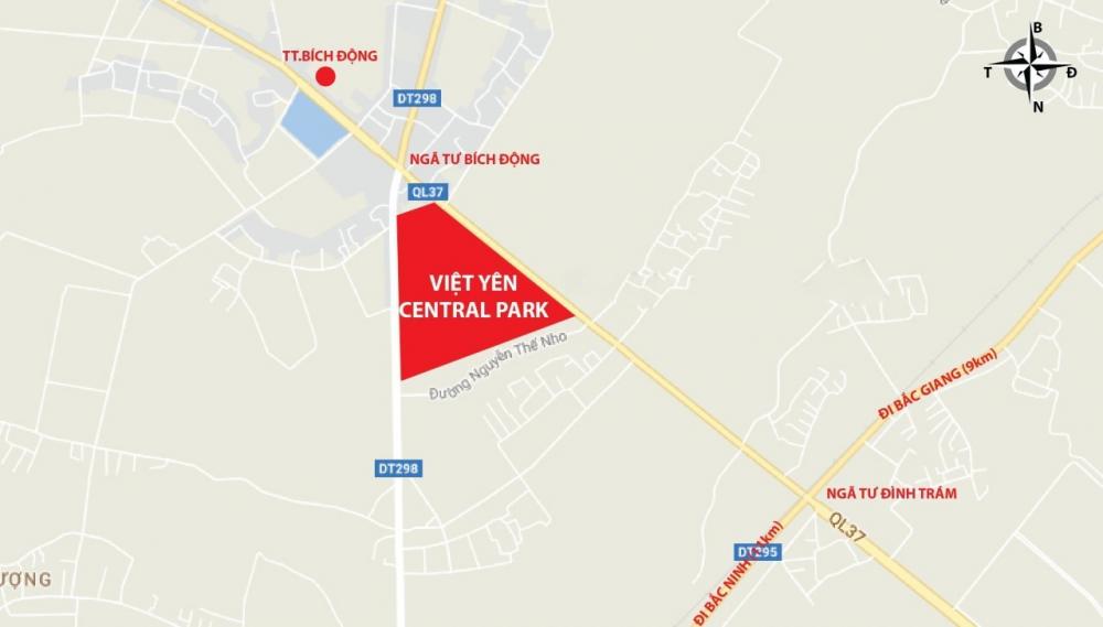 Việt Yên Central Park tọa lạc tại thị trấn Bích Động,huyện Việt Yên,tỉnh Bắc Giang - một khu vị trí đắc địa ngay khu vịkhu vực trung tâm phát triển năng động bậc nhất Việt Yên, kết nối dễ dàng với các tuyến đường giao thông huyết mạch nhưquốc lộ 1A cũ, quốc lộ 37,đường 298, đường cao tốc,…