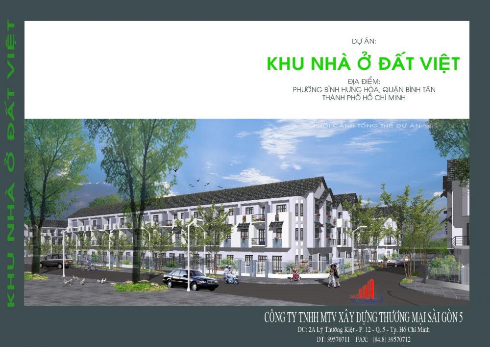 Khu nhà ở Đất Việtnằm trên mặt tiền đường số 5, khu phố 3, phường Bình Hưng Hòa, quận Bình Tân. Đây là dự án được thiết kế hoàn chỉnh, khang trang, tiện ích với đầy đủ cơ sở hạ tầng nhằm đáp ứng cho khách hàng có nhu cầu thiết thực về nhà ở. Dự án góp phần chỉnh trang khu dân cư hiện hữu và tăng mỹ quan kiến trúc khu dân cư mới.