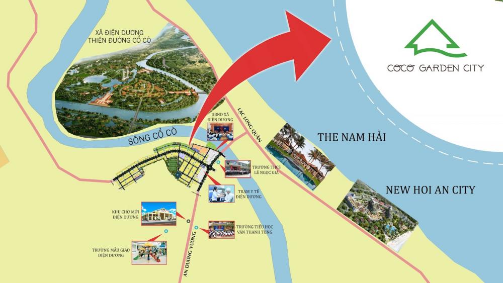 Coco Garden City tọa lạc ở vị trí đắc địa, trung tâm phường Điện Dương, Điện Bàn, Quảng Nam. Dự án có phía Nam giáp đường Lạc Long Quân và An Dương Vương; phía Bắc giáp dự án Thiên đường Cổ Cò; phía Tây giáp khu dân sinh; phía Đông giáp Khu nghỉ dưỡng Trú Đông.