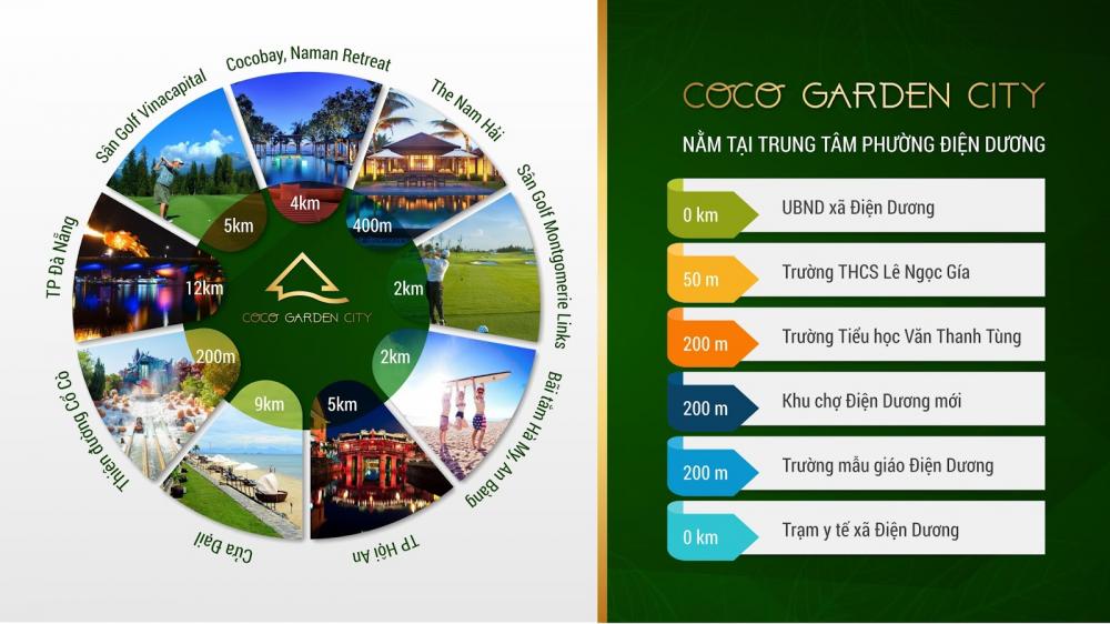 Khu đô thị Coco Garden City tọa lạc ở trung tâm phường Điện Dương nên được thừa hưởng các tiện ích xung quanh như: