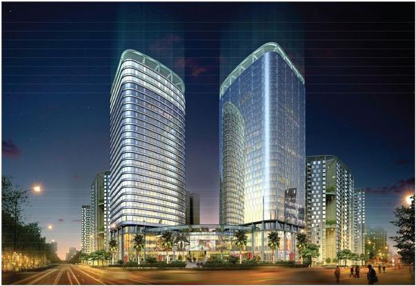 - Tổ hợp dịch vụ, khách sạn, văn phòng và nhà ở cao cấp bao gồm khối nhà cao tầng bố trí trên diện tích 4,5 ha, chiều cao trung bình từ 20-27 tầng với tổng số 1001 phòng ngủ, căn hộ, văn phòng và nhà ở cao cấp.