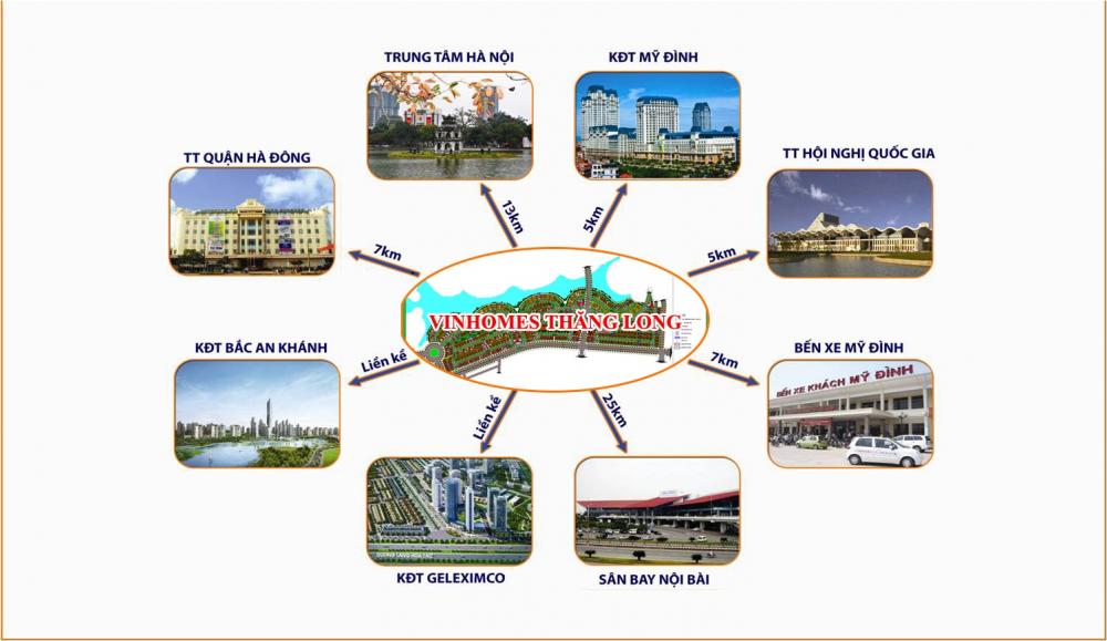 Từ Vinhomes Thăng Long đi vào trung tâm TP. Hà Nội và khu vực lân cận rất tiện lợi và nhanh chóng nhờ vị trí đắc địa của dự án. Khu đô thị cũng rất thuận tiện di chuyển ra những tiện ích hàng đầu xung quanh như sân vận động Quốc Gia, Thiên đường Bảo Sơn, Trung tâm hội nghị Quốc gia,...