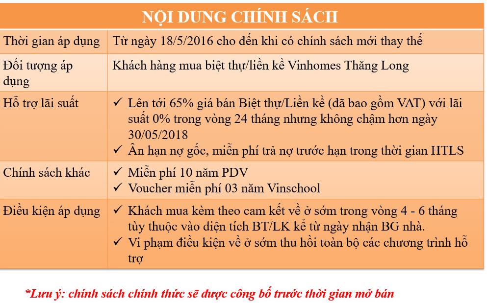 Chính sách hỗ trợ tài chính khi mua căn hộ Vinhomes Thăng Long