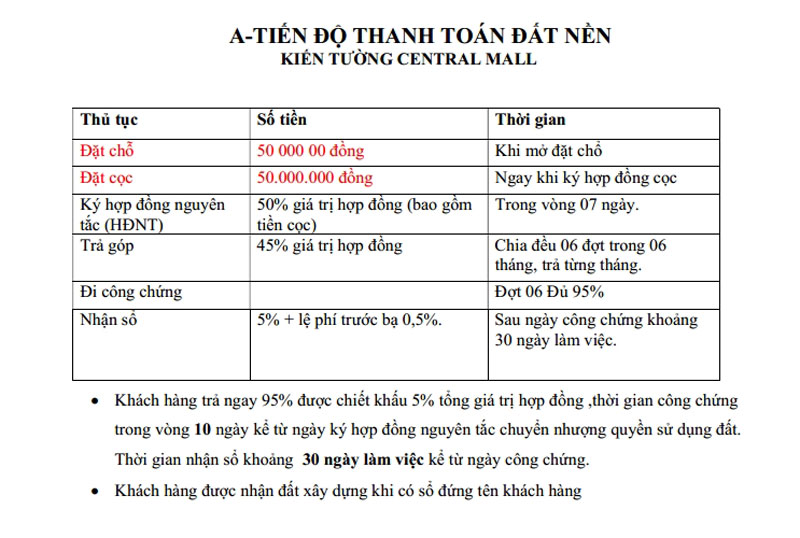 - Giá bán đất nền tại Central Mall từ 6 - 9 triệu đồng/m2