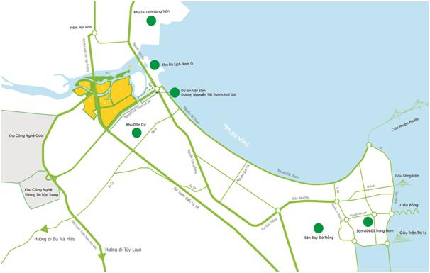- Phía Nam giáp đường Nguyễn Tất Thành nối dài