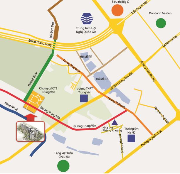 - Vị trí chung cư Trung Văn là khu vực đặt trụ sở nhữngtrung tâm hành chính, văn hoá vàchính trị lớn của cả nước gồm có:Trung tâm Hội Nghị Quốc Gia, Bảo Tàng Hà Nội, Cung Triển Lãm Quy Hoạch Hà Nội,Sân Vận Động Mỹ Đình và trụ sở mới của một sốcơ quan đơn vị Bộ Ngoại Giao, Cung triển lãm Quốc Gia.