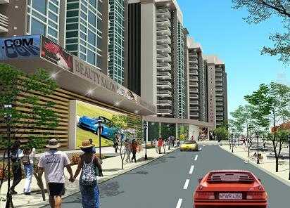 Tổ hợp khối công trình chung cư cao tầng, thấp tầng kết hợp đế thương mại dịch vụ. Loại hình dịch vụ chủ yếu là siêu thị, ngoài ra còn kết hợp dịch vụ chăm sóc sức khoẻ, vui chơi giải trí. Khu nhà liên kế phố kết hợp thương mại dọc các trục đường chính. Hai khối nhà dịch vụ (DV2) ở đầu trục chính tiếp giáp với khu dân cư sông đà 11. Vừa tạo điểm nhấn cảnh quan ở đầu trục vừa là cửa hàng phục vụ nhanh các nhu cầu hằng ngày cho người dân. Nhà xe (kết hợp nhà điều hành giao dịch) với quy mô phục vụ khoảng 500 xe ôtô và 200 xe gắn máy. Công trình sẽ đáp ứng nơi đỗ xe khi số lượng xe ôtô tăng lên trong tương lai.