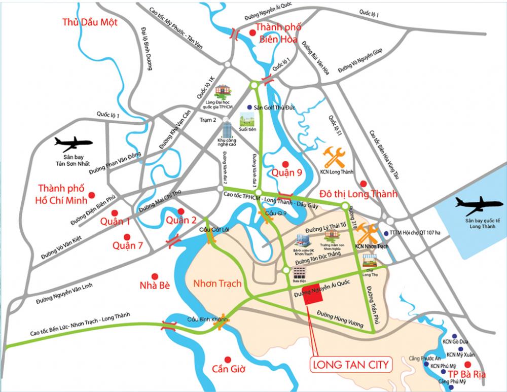 Khu đô thị Long Tân City sở hữu vị trí đắc địa trong khu vực Nhơn Trạch, Đồng Nai. Nhơn Trạch là vùng đất rộng lớn đang phát triển theo mô hình Khu đô thị Xanh đẳng cấp quốc tế và hiện đại.