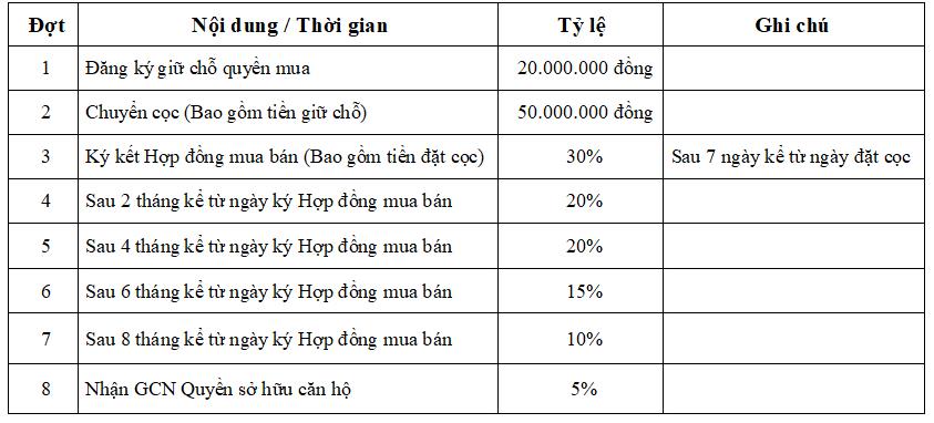 Tiến độ thanh toán tại Khu đô thị Long Tân City