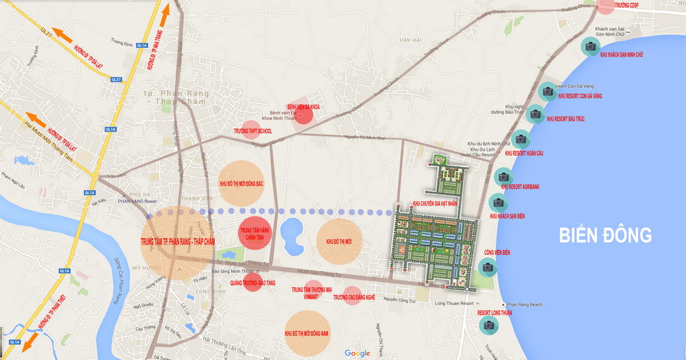- Phía Bắc giáp đường Lê Thánh Tông và quản lý vận hành, khu chuyên gia và trụ sở Ban Quản lý Dự án điện hạt nhân