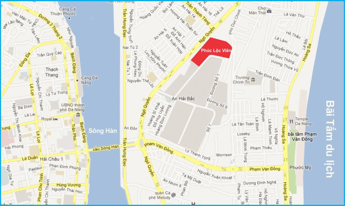 Phúc Lộc Viênnằmtrên đường Ngô Quyền; cách Trung Tâm Thành Phố & cầu quay Sông Hàn 700m, cách phố du lịch khách sạn cao cấp Phạm Văn Đồng chỉ 1km, cách biển du lịch đẹp nhất hành tinh tại Đà Nẵng chỉ 2km (tương đương 5 phút đi xe). Phúc Lộc Viên là nơi an cư thuận tiện cho công tác và nghỉ dưỡng tại Đà Nẵng.