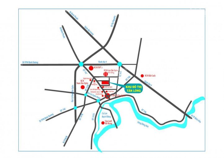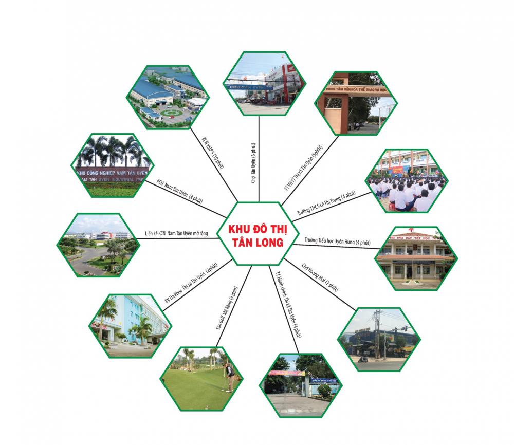 Bên cạnh các tiện ích kể trên, cư dân KĐT Tân Long sẽ được tận hưởng nhiều tiện ích ngoại khu hiện đại khác chỉ trong vài km từ dự án: