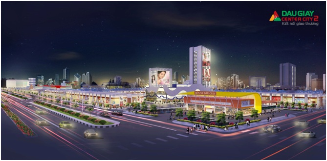 Phối cảnh ban đêm khu đô thị Thương mại Dịch vụ Dầu Giây Center City 2