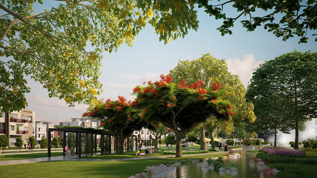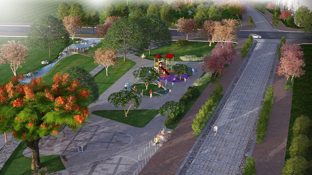 Khu thấp tầng như nhà phố, biệt thự cũng mang vẻ đẹp xanh tươi của thiên nhiên. Một yếu tố không thể thiếu trong hệ thực vật rừng là những con đường mang tên các loài hoa, góp phần làm nên sự phong phú của khu đô thị.