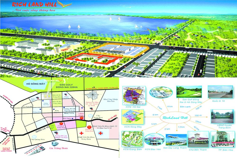 Tọa lạc liền kề sân golf Đồng Nai và hồ Sông Mây chính là dự án đất nền Richland Hill, với diện tích mặt nước hồ 360 ha điều hòa tự nhiên giúp cho dự án có không gian thoáng và khí hậu mát mẻ. Hệ thống giao thông nội bộ cũng đã được xây dựng hiện đại với các tuyến đường hoàn chỉnh cùng vỉa hè rộng rãi khang trang với nhiều cây xanh che phủ.
