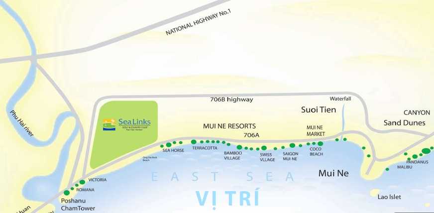 Nằm trên đồi cát tự nhiên trải dài 1km dọc theo bờ Vịnh Mũi Né, ở độ cao 40m và thấp dần về hướng biển, Ocean Vista được bao bọc bởi sân golf 18 lỗ đẹp nhất Việt Nam, 1km bãi biển trong tầm đi bộvà các dịch vụ đựợc cung cấp bởi nhà quản lý khách sạn 5 sao Sea Links Beach.