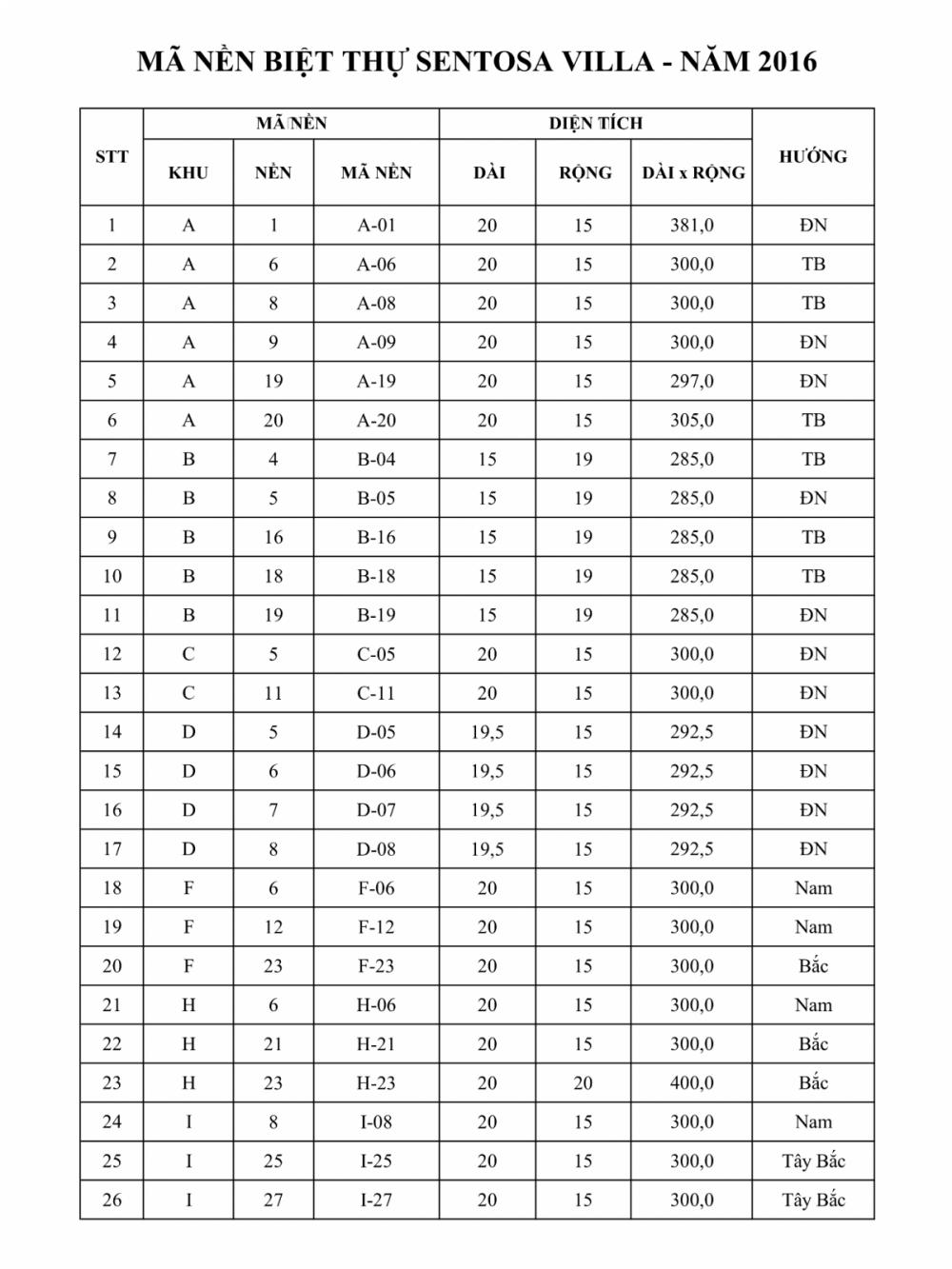 Sơ đồ tổng thể Sentosa Villa