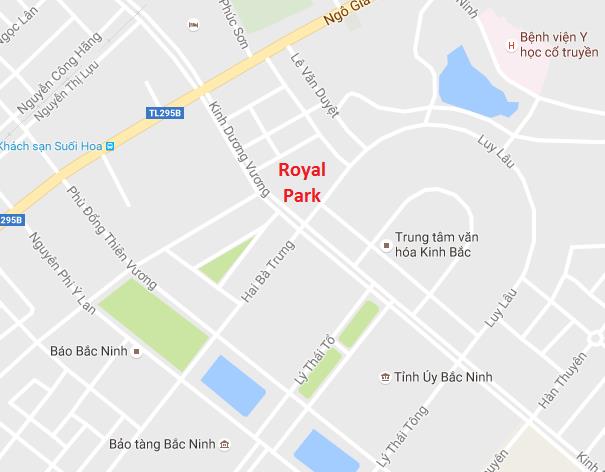 Khách sạn chung cư Royal Park Bắc Ninh tọa lạc tại vị trí đắc địa, nằm trên đường Kinh Dương Vương, phường Vũ Ninh, trung tâm TP. Bắc Ninh, tỉnh Bắc Ninh. Dự án tiếp giáp với các hướng như sau: