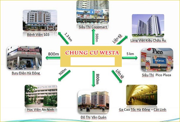 Chung cư Westa cách trung tâm quận Hà Đông 1km về phía Bắc, cách Ngã Tư Sở 3km về phía Nam, rất gần với những trường đại học lớn như Đại học Kiến Trúc, Đại học Hà Nội, Đại học Đại Nam, Học viện Công nghệ Bưu chính Viễn Thông và các trường THPT chất lượng cao, bệnh viện lớn như bệnh viện Xây Dựng, bệnh viện 103,...