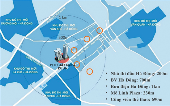 Tòa tháp đôi tọa lạc ngay trên tuyến đường Quang Trung, quận Hà Đông, liền kề với khu đô thị mới Ngô Thì Nhậm, gần những công trình trọng điểm khác như khu đô thị mới Văn Phú, khu đô thị mới Văn Khê, trung tâm thương mại Hà Đông, bến xe Hà Đông, đường sắt trên cao Hà Đông - Cát Linh, trường tiểu học Đoàn Kết, trường chuyên Nguyễn Huệ, trung học phổ thông Quang Trung, bệnh viện 103, bệnh viện đa khoa Hà Đông, đại học Kiến trúc, đại học Hà Nội,...
