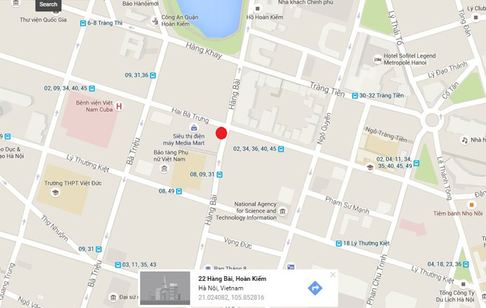 • Địa chỉ 22-24 Hàng Bài và 25-27 Hai Bà Trưng, Phường Hàng Bài, Hoàn Kiếm, Hà Nội