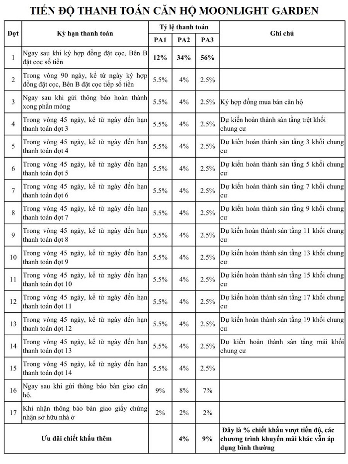 Lộ trình thanh toán Moonlight Residences