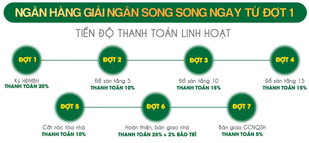 - Đợt 7: Thanh toán 5% còn lạikhi nhận sổ hồng