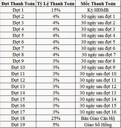 Tiến độ thanh toán tại dự án